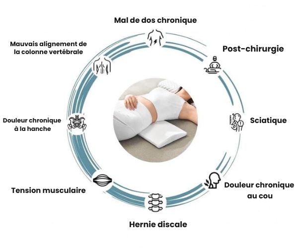Ce coussin remet votre dos dans sa position naturelle, en maintenant votre colonne vertébrale alignée pour prévenir les douleurs chroniques.