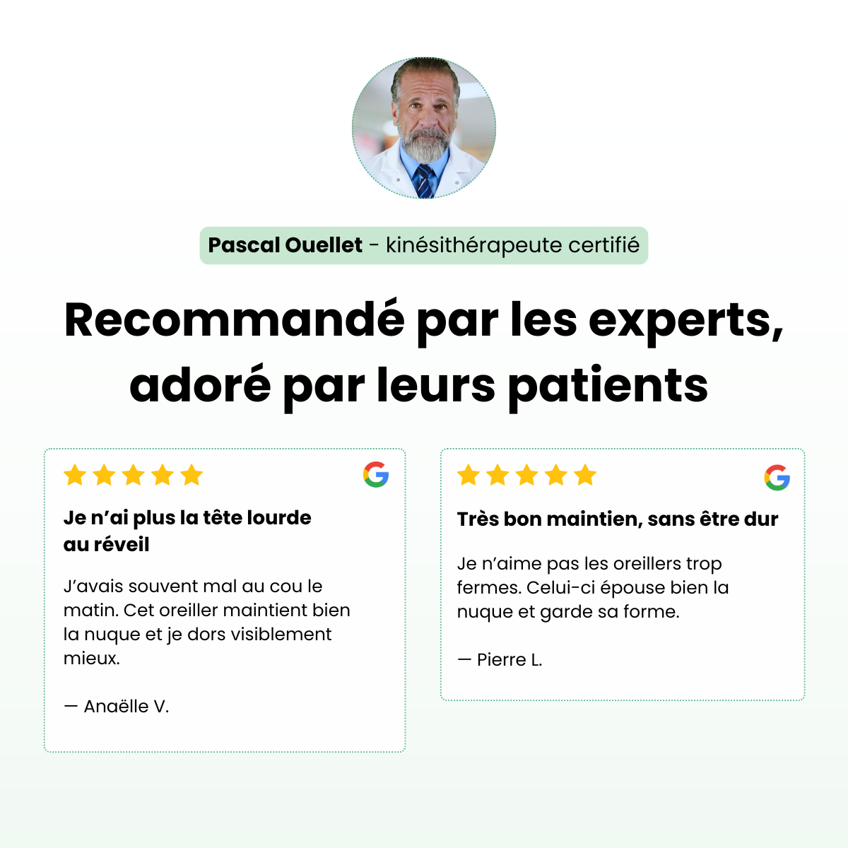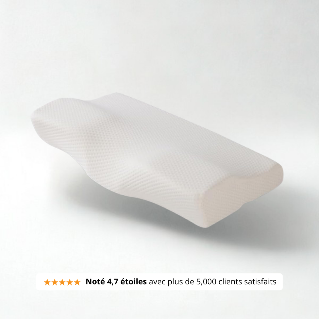 des kinésithérapeutes recommandent un oreiller ou coussin cervical à mémoire de forme pour aligner la colonne vertébrale et prévenir les douleurs chroniques.*